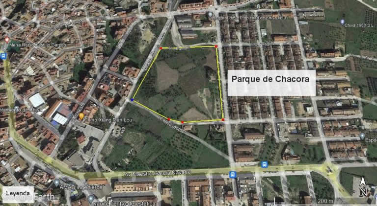 El parque urbano de Chacora fue proyectado en la década de los 80, cuarenta años después Chiva sigue sin contar con su gran parque urbano. Donde debería haber un parque urbano de 30.000 m2, aproximadamente, para el disfrute de todos los vecinos solo encontramos campos abandonados, hierbajos, escombros y suciedad lo que convierte a la zona en un nido de ratas y otras plagas, que sufren los vecinos de su entorno más cercano.