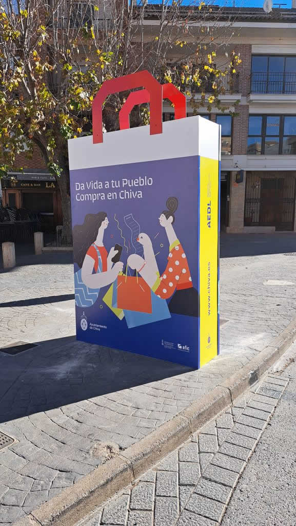 El Ayuntamiento de Chiva, a través del Área de Comercio de la concejalía de Innovación de Dinamización Socioeconómica, ha puesto en marcha la campaña “Da vida a tu pueblo. Compra en Chiva” para impulsar el tejido comercial y de proximidad del municipio en Rebajas. Para ello, ha instalado tres monolitos en diferentes lugares del casco urbano.